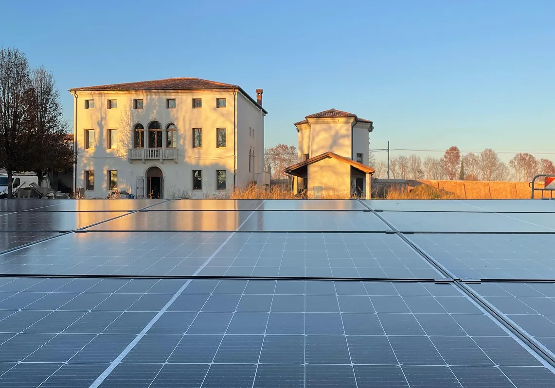 Realizzata a Villafranca Padovana la prima CER con sede in una villa seicentesca: Villa Durer. L’edificio, completamente restaurato e reso autosufficiente grazie a 60 kW di fotovoltaico e 120 kWh di batterie, è stato portato ad un consumo energetico quasi zero. Grazie inoltre al bando della Regione Veneto, la sua energia sarà condivisa in rete con altri impianti raggiungendo 1 MW complessivo, dando vita ad una comunità energetica capace di soddisfare i bisogni di 300 famiglie, generando benefici ambientali, economici e sociali.